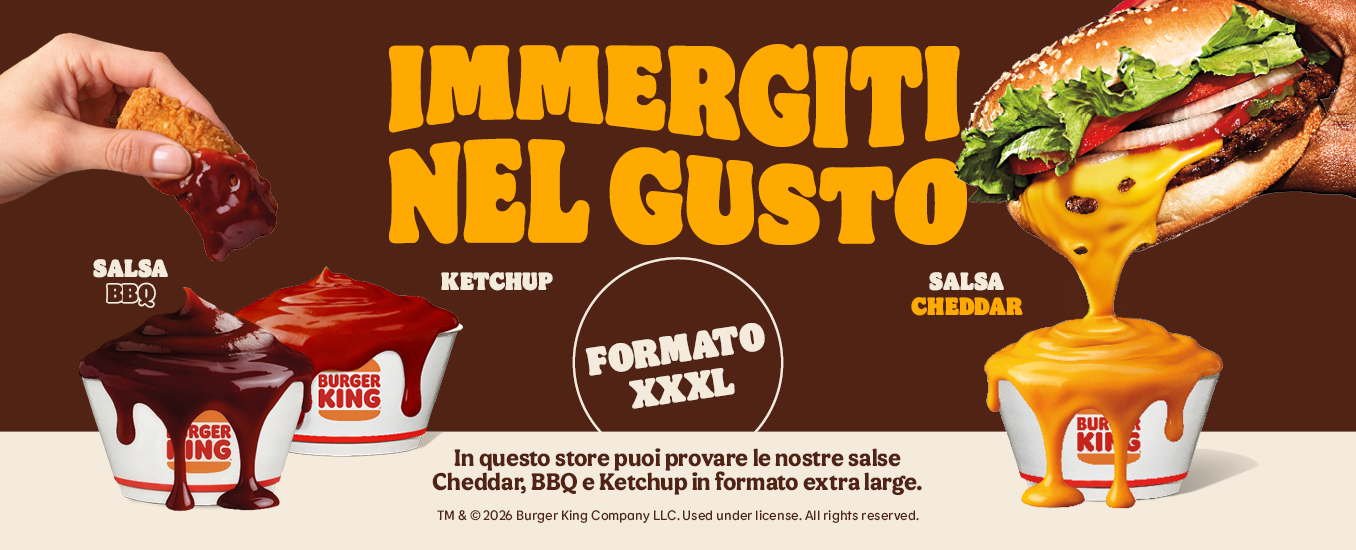 Le nostre nuove salse XXXL sono arrivate, immergiti nel gusto con le salse in formato extra large ketchup, cheddar e barbecue. Solo nei seguenti store: Tibaldi, Milano Viale Abruzzi, Milano Via Pola, Busto Arsizio, Vergiate, Verano, Palazzolo, Orio Center, Trento, Thiene, Ardeatina, Roma Tor Sapienza