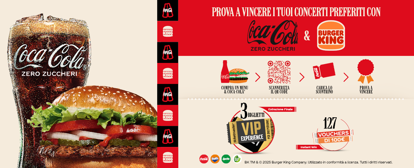 Compra un menu con una bibita Coca Cola, carica lo scontrino sulla pagina dedicata e prova subito a vincere.