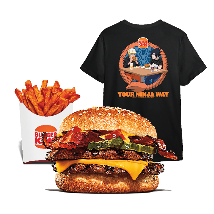 Bacon, Doppia carne, Ketchup, Senape, Formaggio, Cetrioli, Pane con sesamo. Per informazioni su ingredienti, allergeni e caratteristiche dei prodotti consulta il cartello ingredienti presente nella sezione “Allergeni”, disponibile a piè pagina del sito web al seguente indirizzo https://www.burgerking.it/allergeni