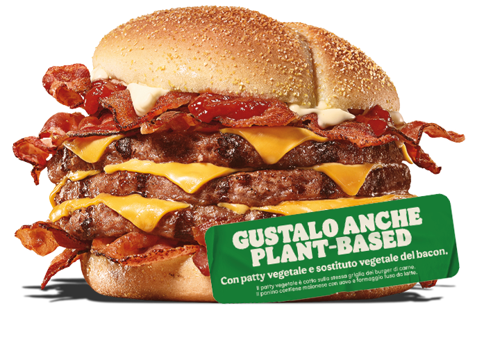 *Il patty vegetale è cotto sulla stessa griglia dei burger di carne. Per informazioni su ingredienti, allergeni e caratteristiche dei prodotti consulta il cartello ingredienti presente nella sezione “Allergeni”, disponibile a piè pagina del sito web.